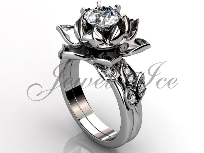 Lotus Flower 14k White Gold Plated Round White Cz Diamond Round Cut Engagement Wedding Ring Jewelry Foretadrenaline Com